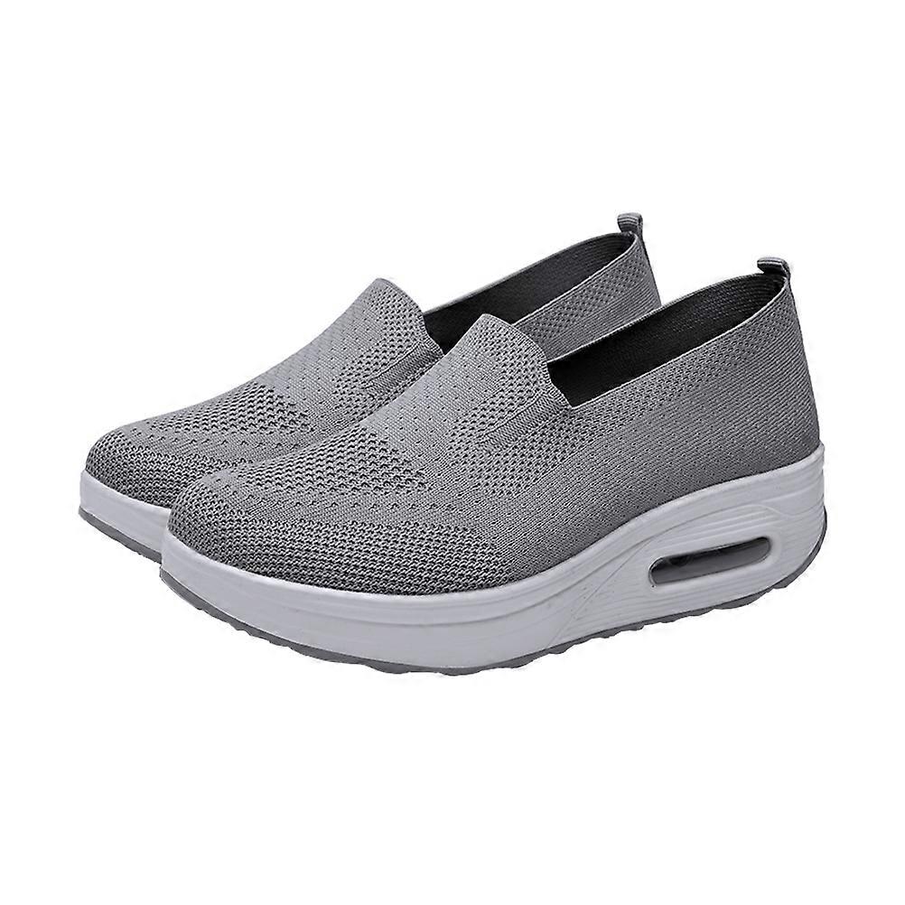 Women Sports Mesh Shoes Breathable Relaxation Slugged Bottom Casual Wear Grey 1Pair