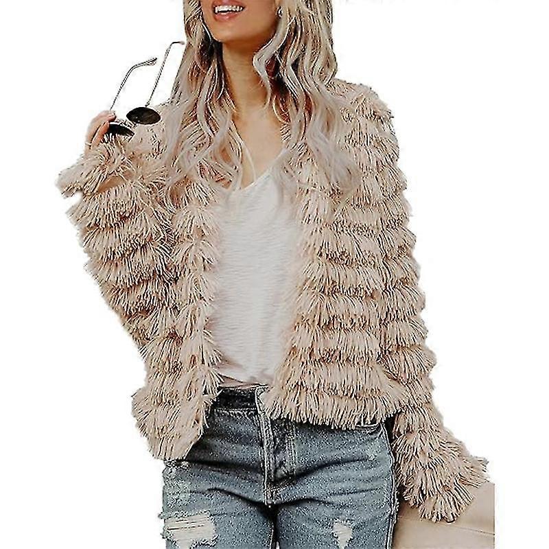 Womens Open Cardigan Faux Fur Coat, Vintage Parka Shaggy Jacket