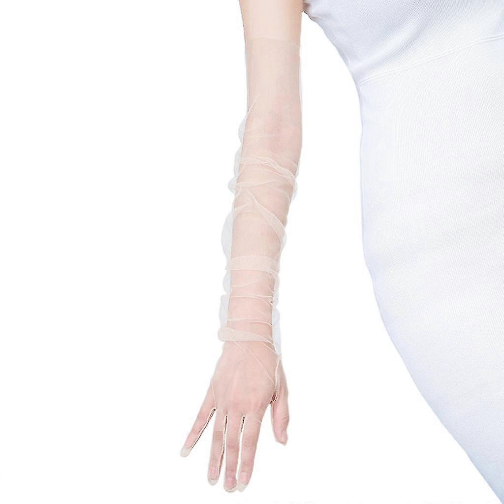 Women Tulle Elbow Long Wedding Gloves Solid Color Sheer Vintage Opera Mittens