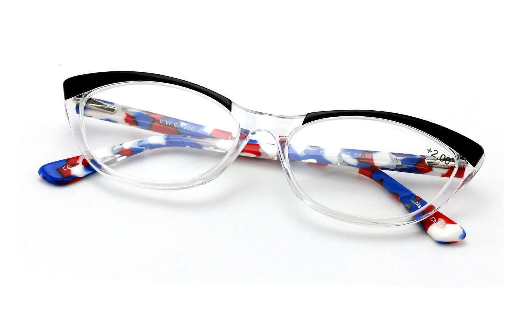 Women Cat Eye Slim Sleek Vintage Fashion Acetate Reading Glasses - 2 Tone Pointed Tip Reader Eyeglasses