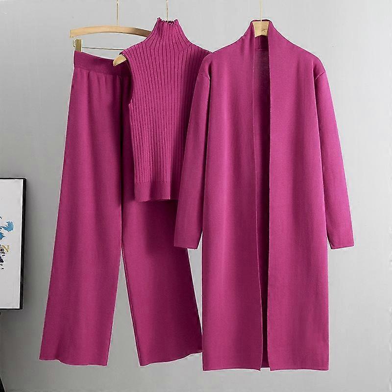Spring Autumn Women Cardigan Tracksuits Fashion Knitted Pant Set Ladies Sweater Suit Vintage Fashion Ladies Three Piece Set