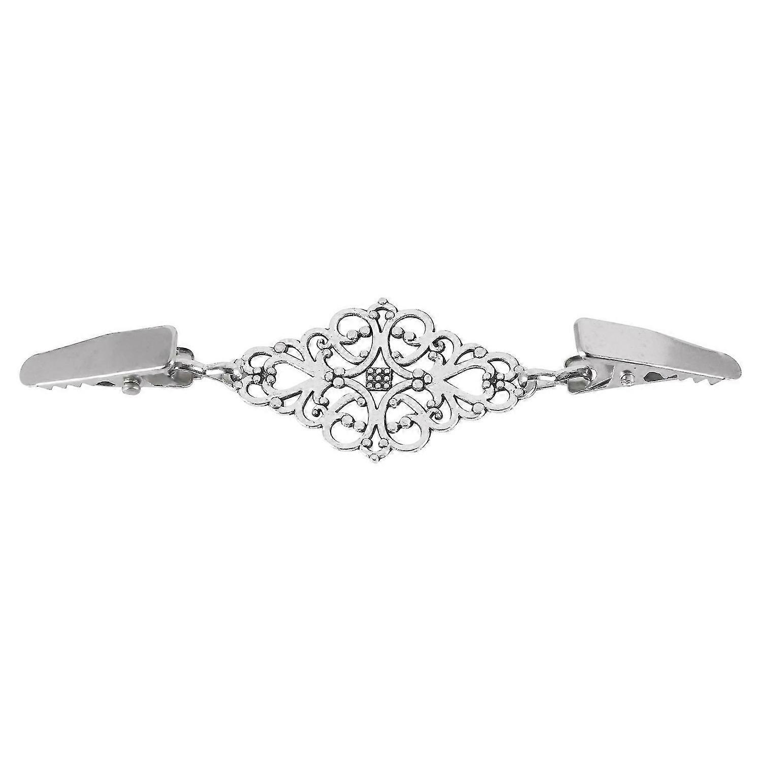 Women Cardigan Sweater Blouse Pin Shawl Brooch Flower Clips Silver