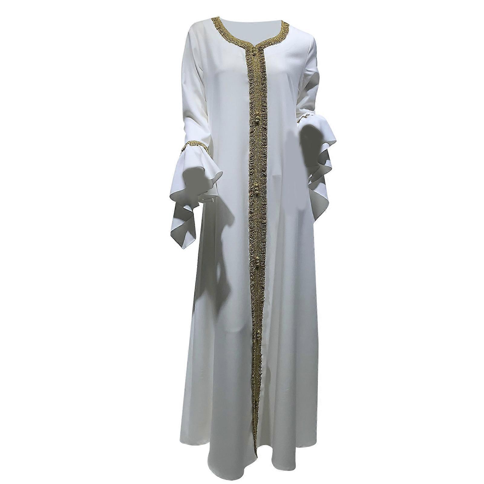 Womens Islamic Kaftan Dress Kaftan Dress Full Length Islamic Kaftan Robes Ruffled Sleeve Islamic Kaftan Dress White XL