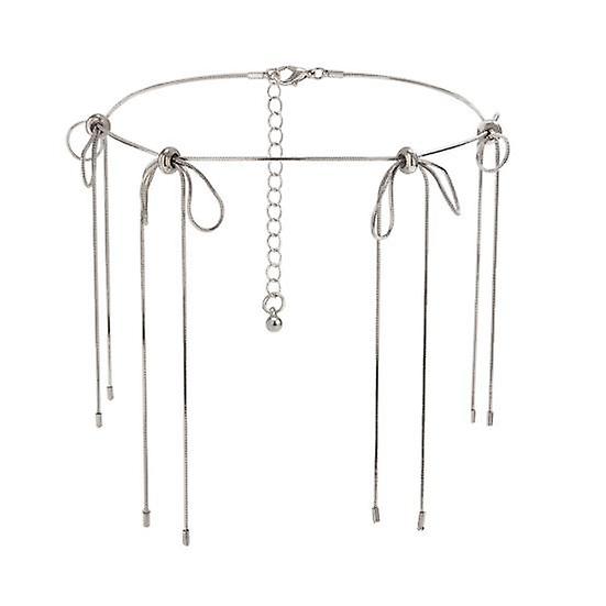 Women Necklace Bow Tassel Decor Knot Solid Color Electroplated Alloy Adjustable Lightweight Cold Style Party Club Choker Lady Neck Jewelry