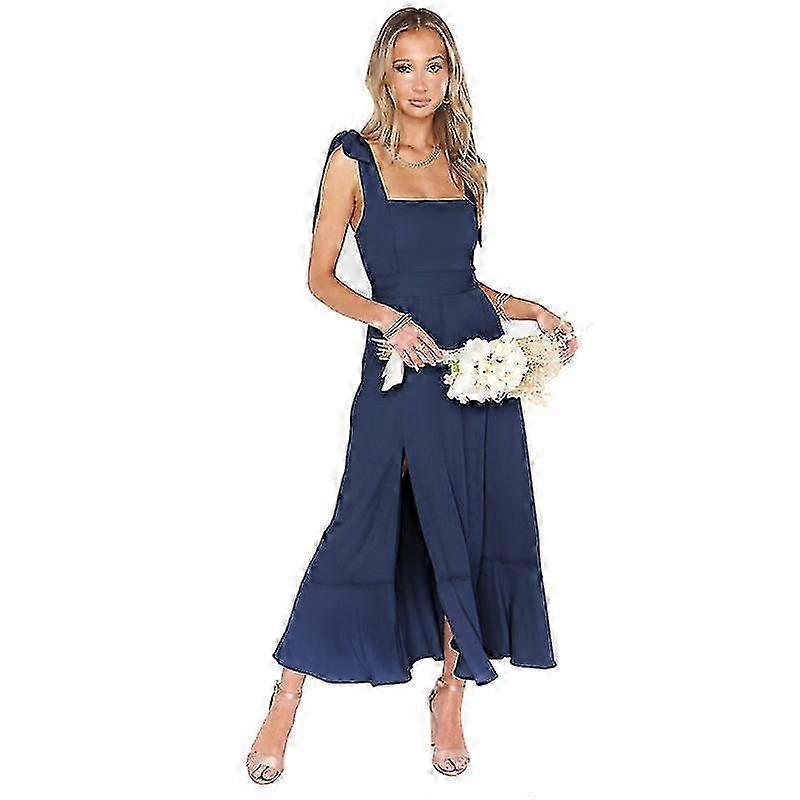 Women's Elegant Bridesmaid Dresses, Square Neck Split Midi Formal Dress