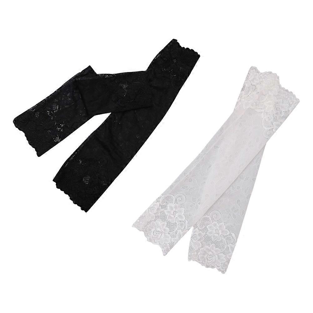 Womens Arm Sleeves Lace UV Protection Summer Sports Close Fitting 2 Pairs