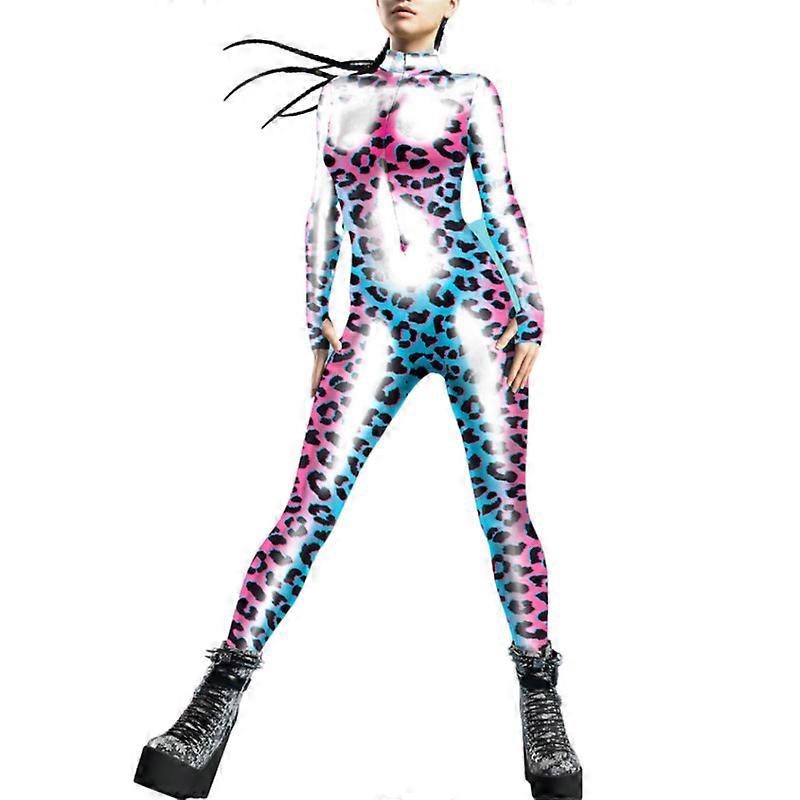 Women's Fashion 3D Thermal Imaging/Leopard Printed Cosplay Costume Halloween Party Rave Bodysuit with Thumbholes