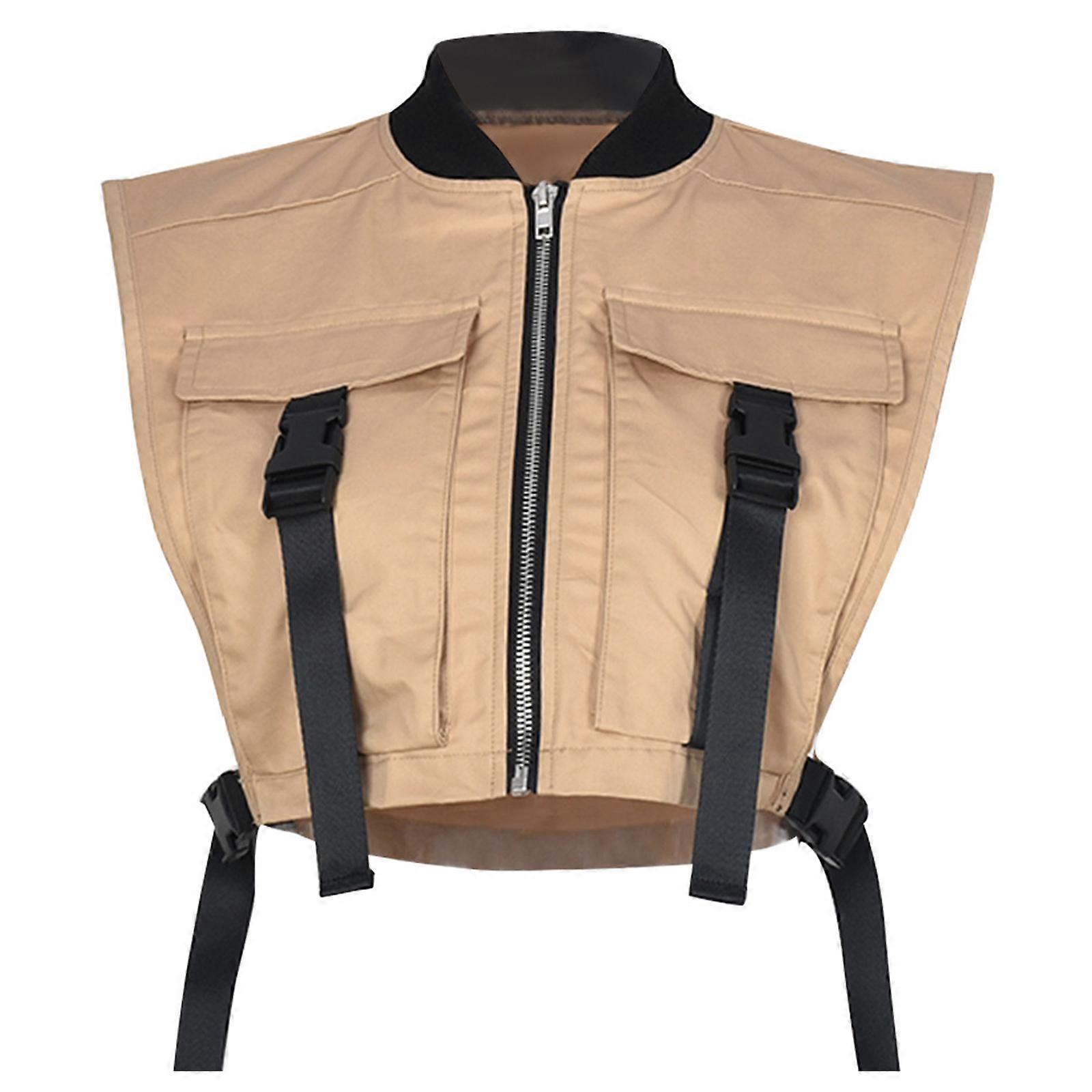 Womens Fashion Cropped Zipper Up Cargo Vest with Pockets Harajuku Punk Rock Buckled Bandage Sleeveless Jackets Waistcoat XL Khaki