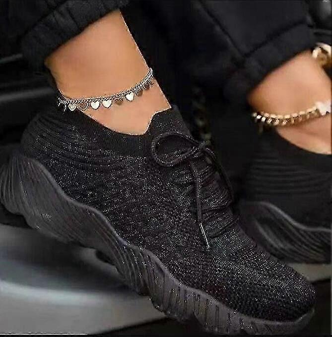 Womens Knit Sneakers Ladies Lace Up Trainers Sport Gym Running Women Shoes Size - KM