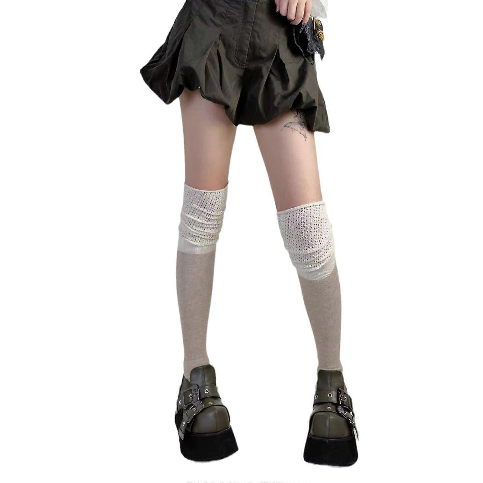Womens Knitting Knee High Bandage High Boot Long Tube Knitted Leg Sleeve Foot Covers Non Slip Warm Thick Pair Stockings oatmeal