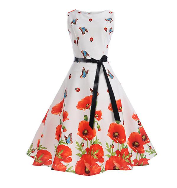 Women's Retro Hepburn Dress Classic Waist Thin Large Swing Belted Dress