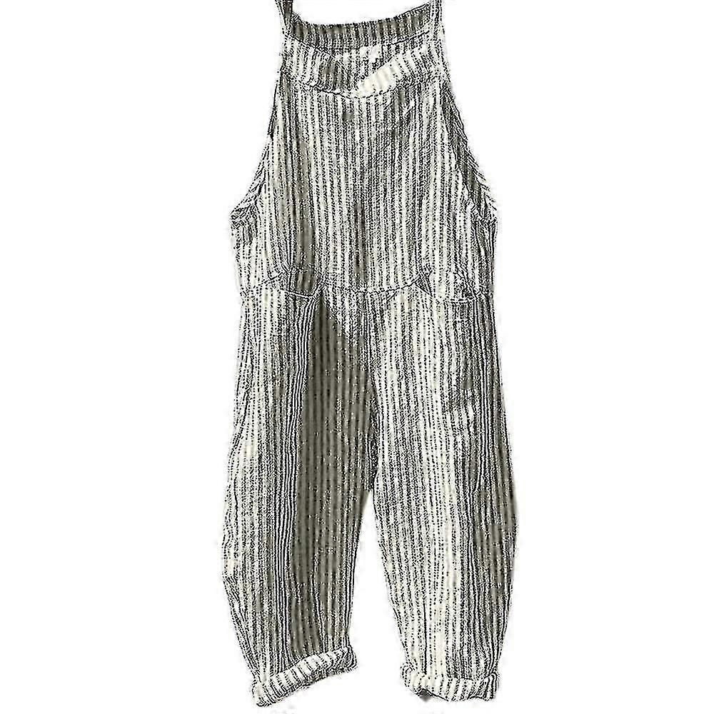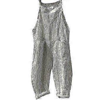 Womens Striped Dungarees Overalls Summer Holiday Casual Loose Playsuit Pocket Trousers Rompers Jumpsuit