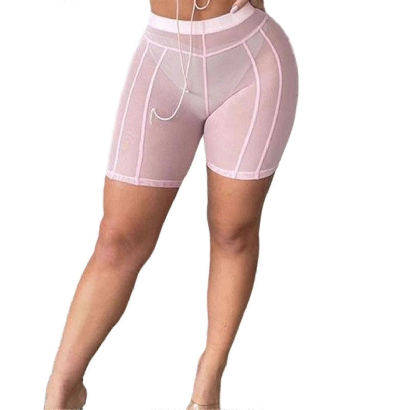 Women Sexy Sport Mesh High Waist Biker Shorts See Through Leggings Short Pants-jie