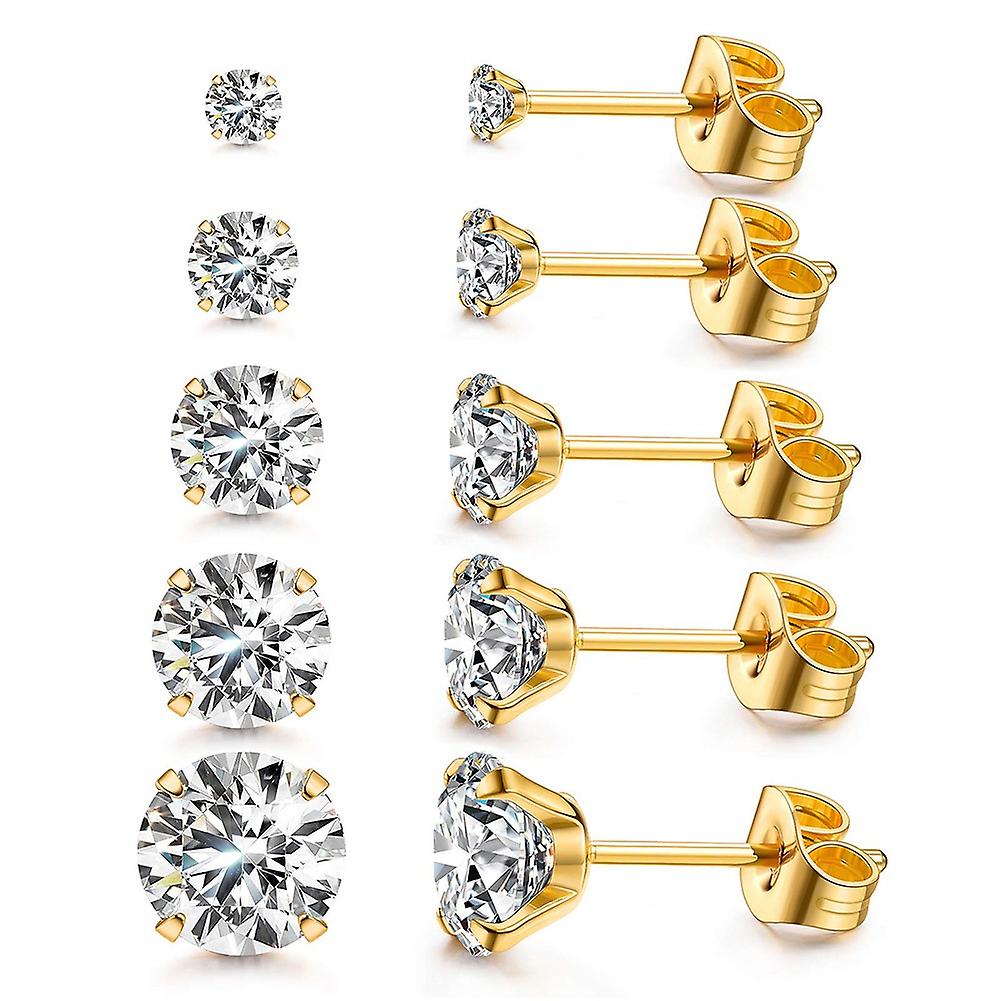 Women earring girl stud ear Drop Stainless Steel Gold/Silver 4 8mm Six Claws Zirconia Crystal Weddin