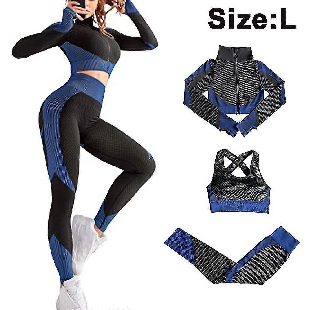 Women's Workout Outfit 3 Pieces Tracksuit-seamless Hip Lift Yoga Leggings And Stretch Sports Bra Gym Clothes Set