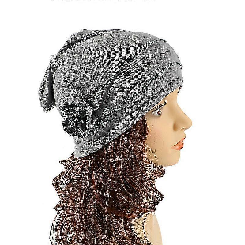 Women Turban Flower Caps Elastic Beanie Headscarf-MXBC