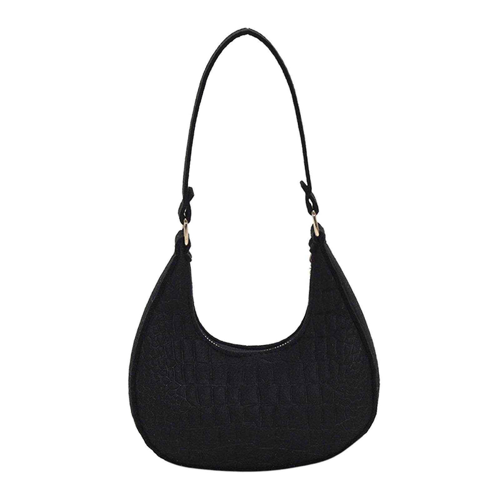 Women Underarm Bag Casual with Zipper Satchel Female Soft Purse Shoulder Bag Black