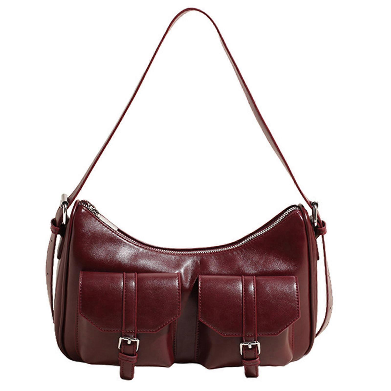 Women Armpit Bag Multi-Pockets Handbag Purse All-matching Crossbody Bag Retro Commuting Bag Korean Styles Shoulder Bag Burgundy