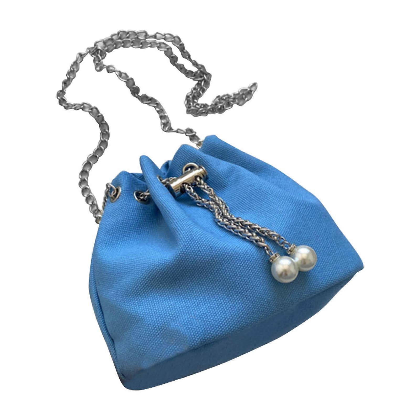 Women Bucket Shoulder Bag Autumn Stylish Large Capacity Hardware Chain Canvas Small Bucket Bag for Daily Party Shopping Blue Free Size