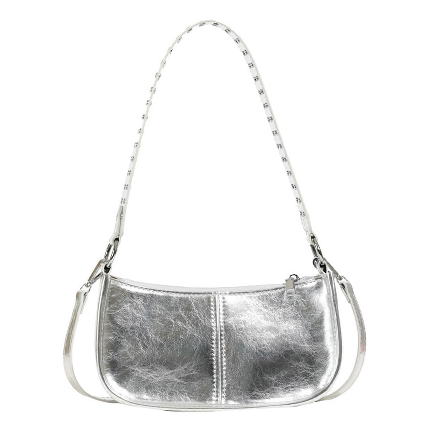 Women Candy Color Shoulder Bag Simple Messenger Bag PU Leather Armpit Bag Korean Styles Crossbody Bag for Daily Silver