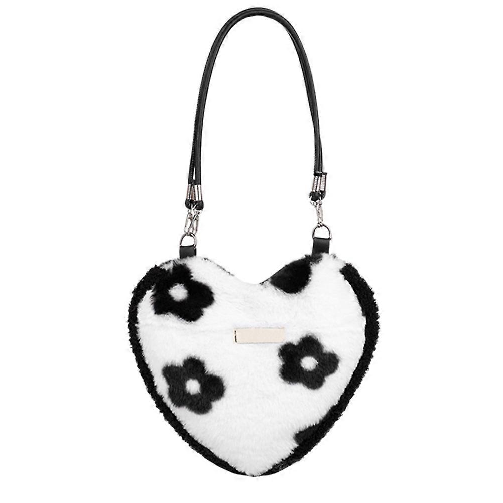 Women One-Shoulder Bag Heart Shape Plush Bag Simple Style Assorted Color 30X26cm Storage Pouch 1Set