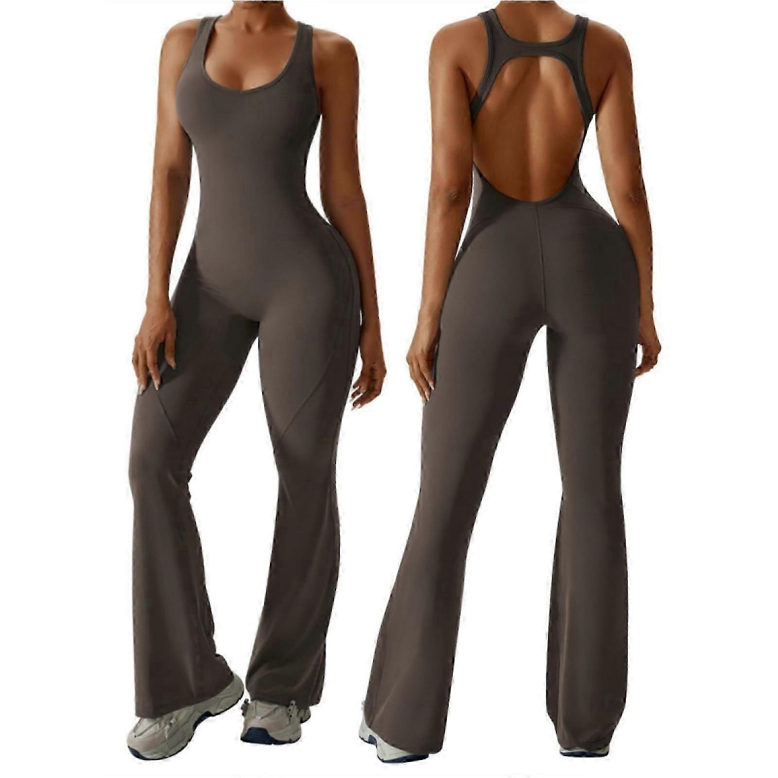 Womens Flare Jumpsuit with Bra Tummy Control Cutout Romper Workout Outfit