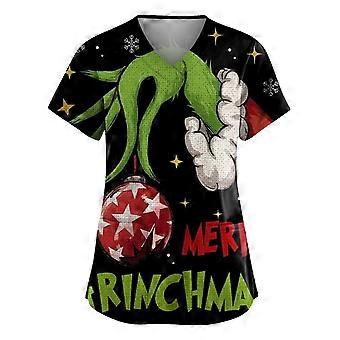 Womens Christmas Grinch Tops Nursing Uniform Scrub Short Sleeve Top With Pocket