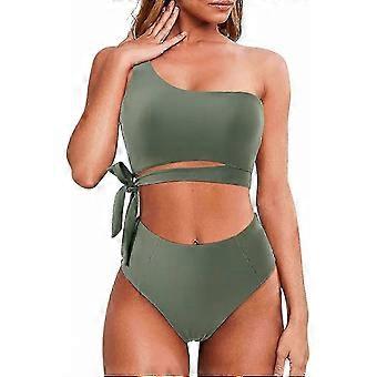 Γυναικεία ψηλόμεσα μπικίνι γραβάτα πλευρά ψηλά κομμένα έναν ώμο δύο κομμάτια μαγιό
