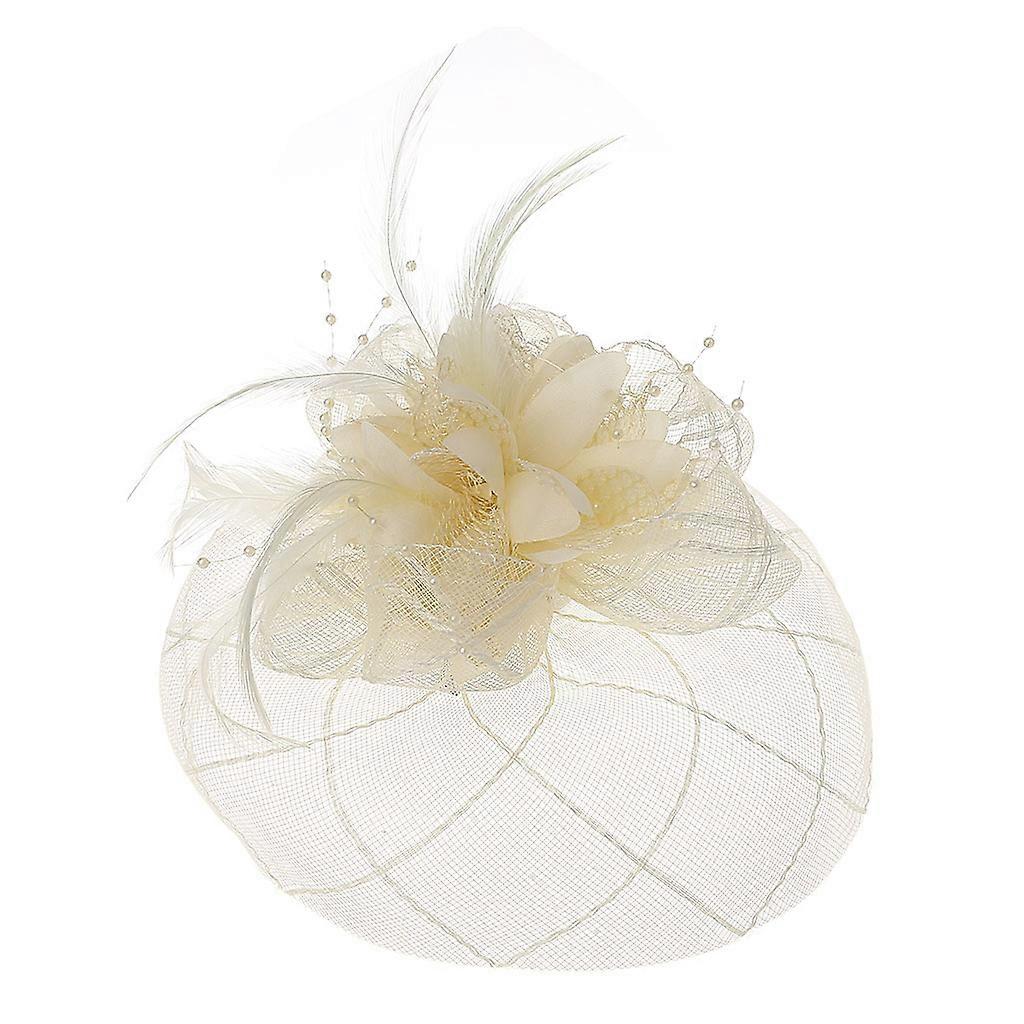 Womens Barrette Fascinator Flower Pillbox Hat Beaded Feather Hair Clip Wedding
