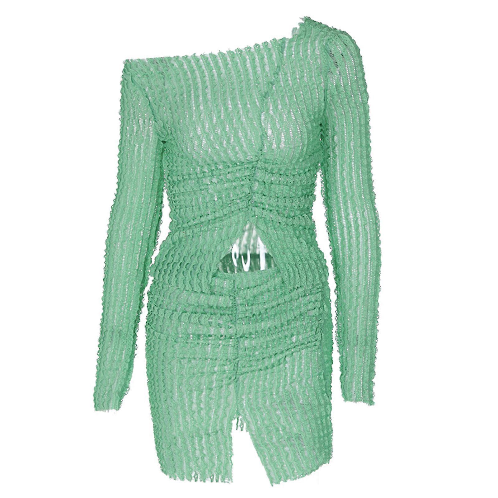Womens Casual Long Sleeve Two Piece Outfits Off Shoulder Crop Top and Mini Skirt Set Solid Color Matching Suit Green S