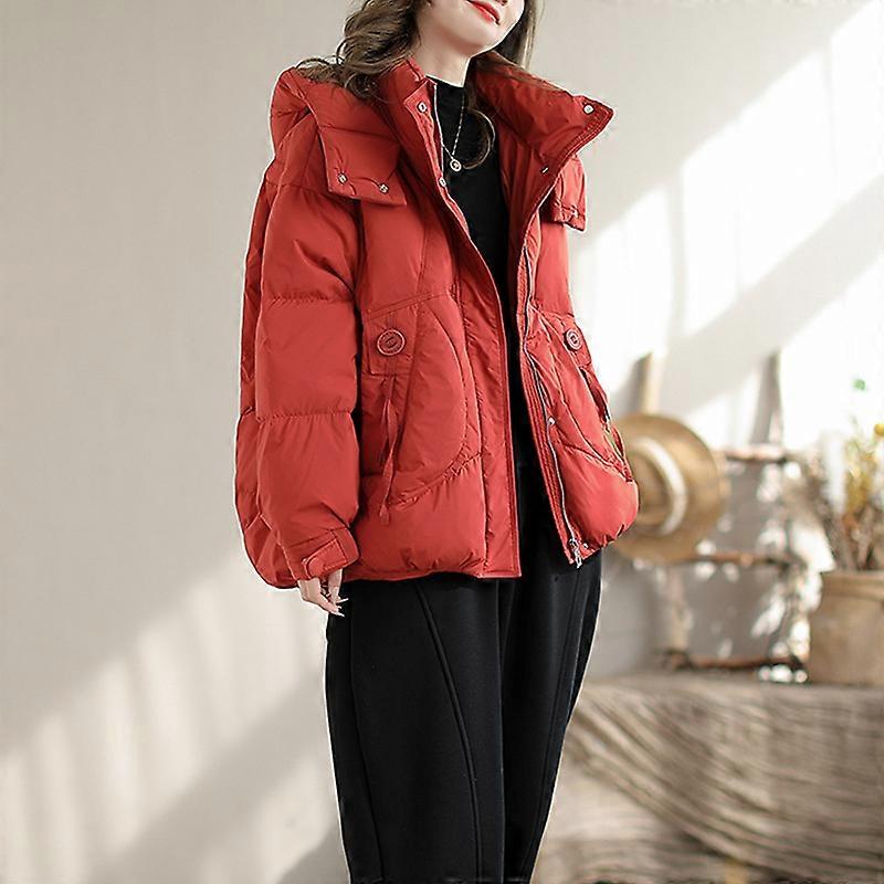 Hign-concerned Chemical : None Craft of Weaving : TAT Release Date : Autumn 2024 Season : Autumn/Winter Age : MIDDLE AGE Place Of Origin : China (mainland) Decoration : Pockets Fabric Type : Broadcloth Style : Office Lady Down Weight : 150g-200g Hooded : Yes Material : POLYESTER Down Content : 90% Filling : White duck down Sleeve Length(cm) : Long Sleeves Thickness : Thick Type : regular Closure Type : zipper Pattern Type : Solid Clothing Length : short4-16inch Gender : WOMEN Origin : Mainland China CN : Zhejiang filling capacity : 101-200 g color : Brick Red,Curry,Khaki,Black product category : down jacket size : M,L shape : loose-fitting Style Type : smart commuter neckband : stand-up collar Whether or not it has a fur collar : collarless Element of popularity : pockets thickness : favor Fabric Name : polyester fiber lapel : zippers sleeve pattern : regular sleeve length of clothing : regular model Applicable gender : women Age group applicable : lifelong sleeve length : long sleeves filler : white duck down Casual : Loose Short : Hooded Warm : Thickened Solid color : Simple Pocket : Stand-up collar
