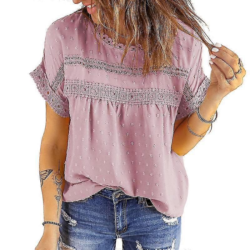 Womens Tops Lace Crochet Short Sleeve Shirts Casual Blouses