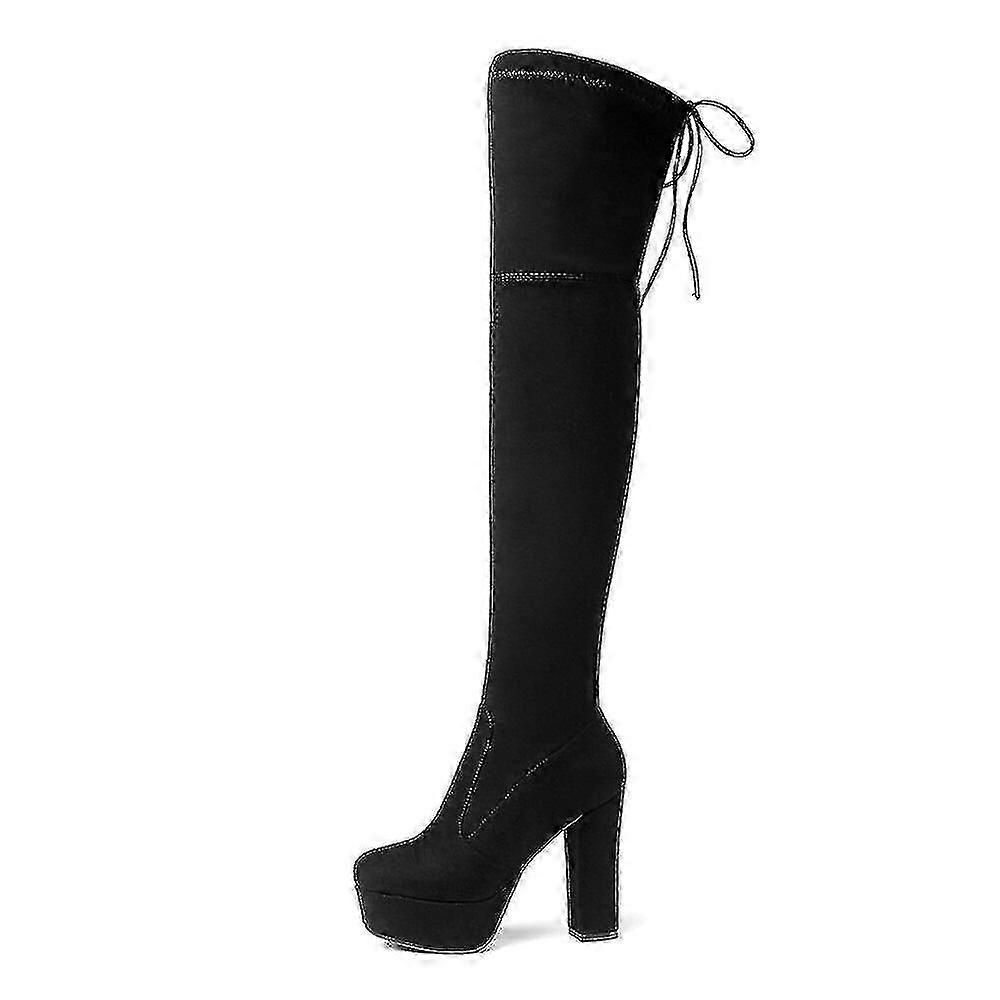 Ladies' knee-high boots, SKW3806, Suede material, 12 cm heel height