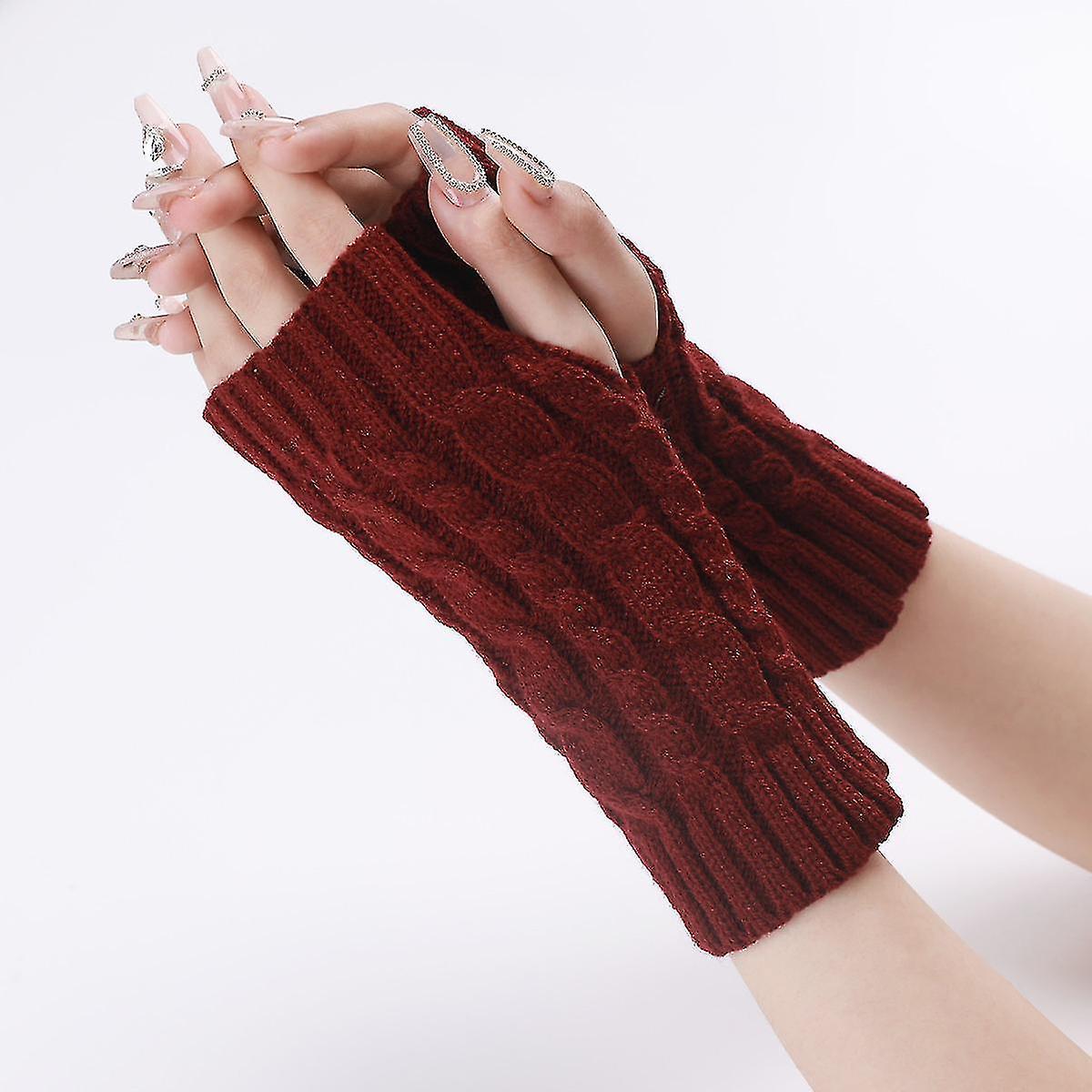 Womens Wrist Warmers Thick Knit Fingerless Gloves Winter Mitten
