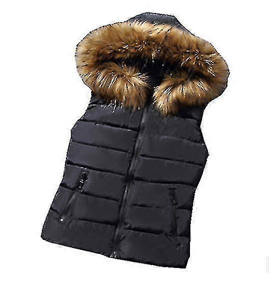 Womens Puffer Vest Quilted Casual Warm Winter Waistcoat Removable Hood Jacket Coat