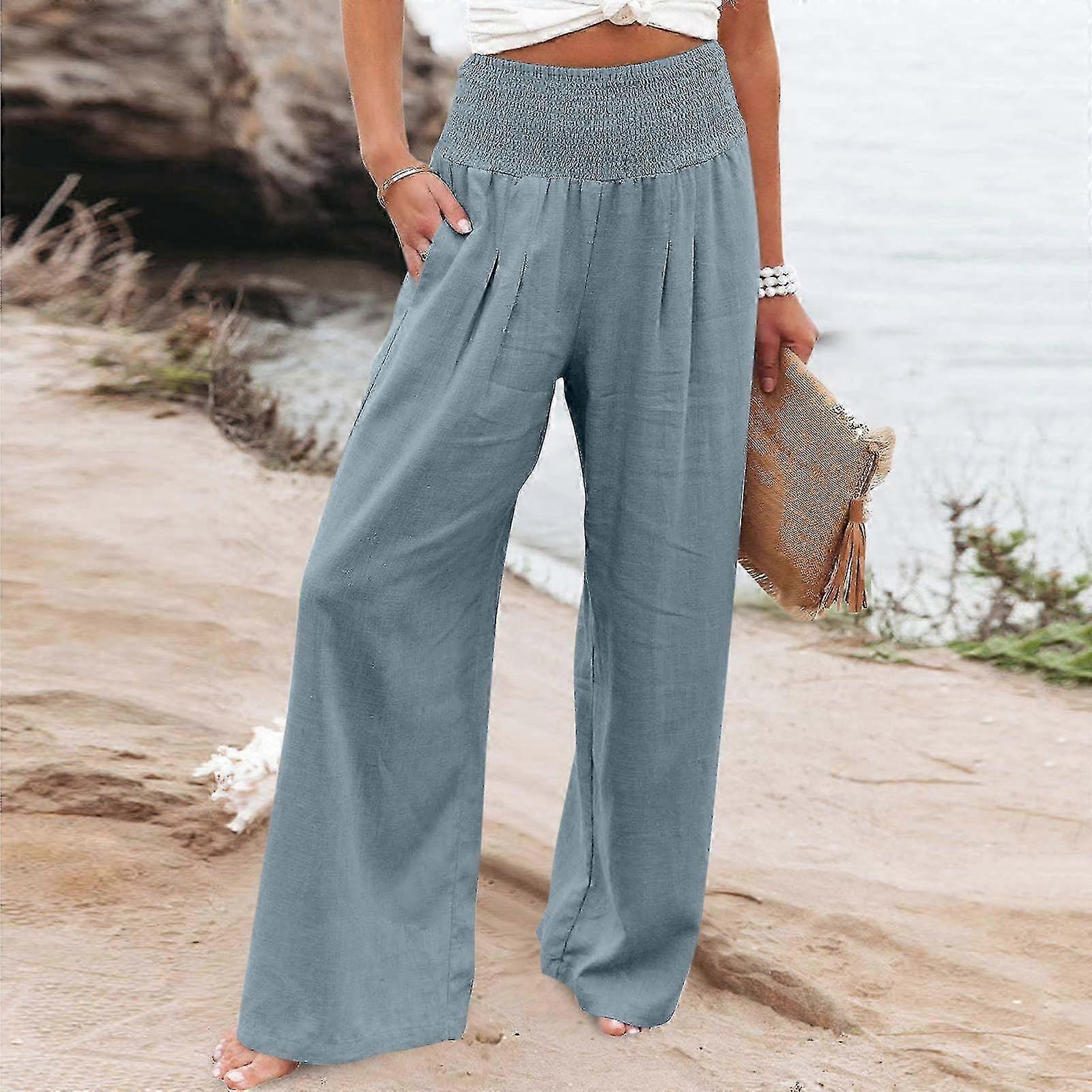 Women's Summer Wide Leg Trousers High Waist Loose Fit Casual Pants with Elastic Waistband