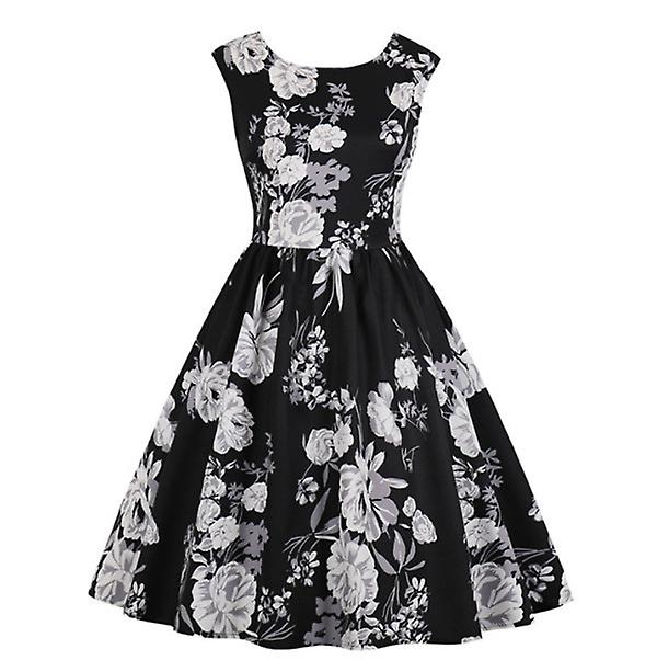 Women's Fashion Outlet Vintage Print Short Sleeve Classic Hepburn Lace Up Dress Swing Skirt