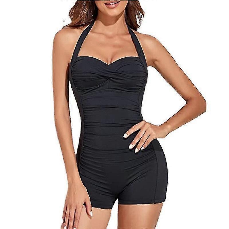 Women's One Piece Bathing Suit Tummy Control Swimwear Halter Ruched Swimsuit Plus Size Vintage