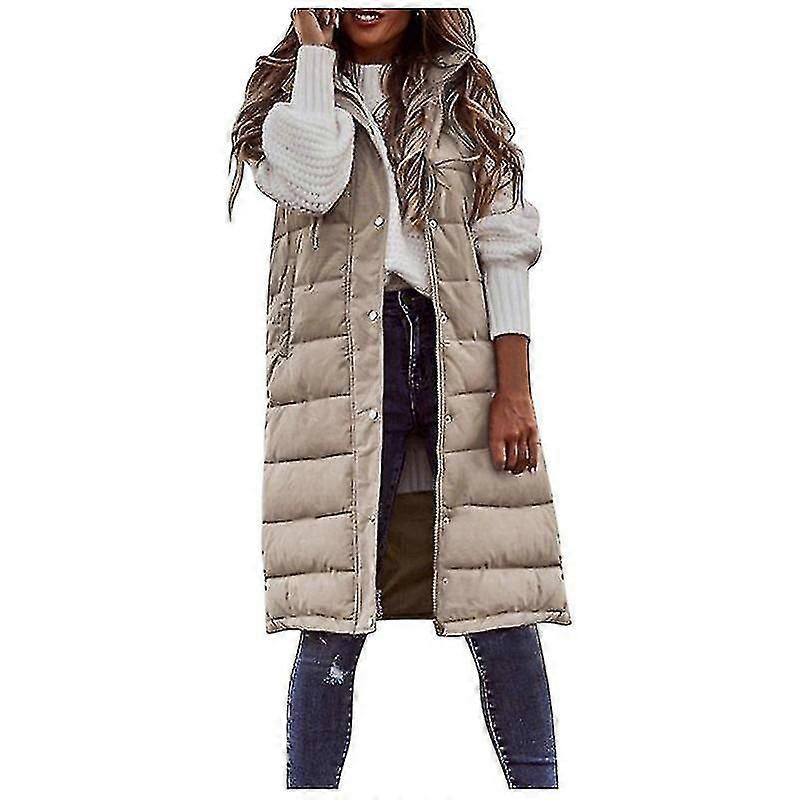 Womens Long Hooded Warm Jacket Knee Length Down Vest With Hood