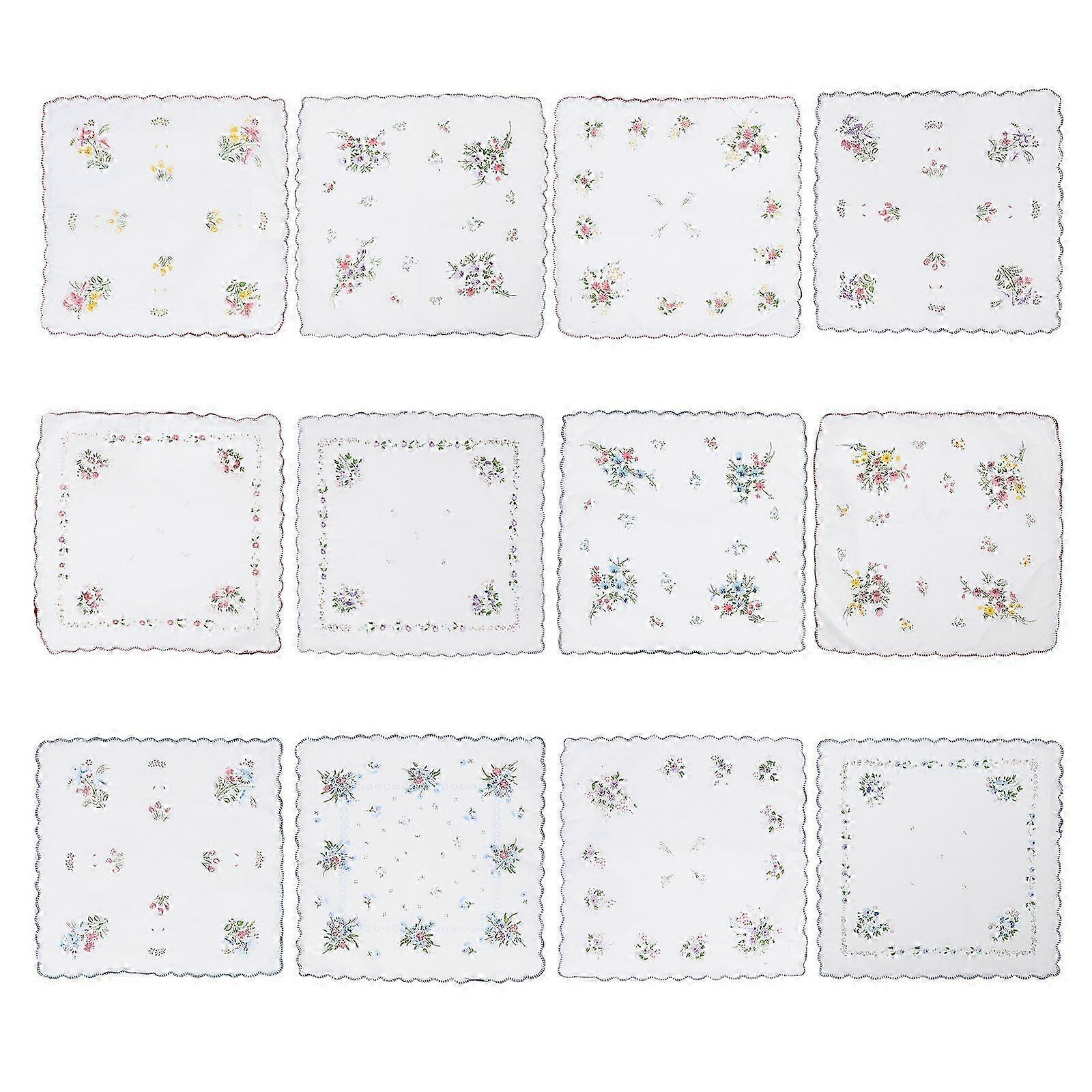Women Handkerchief Cotton for Ladies 12Pcs Floral Prints