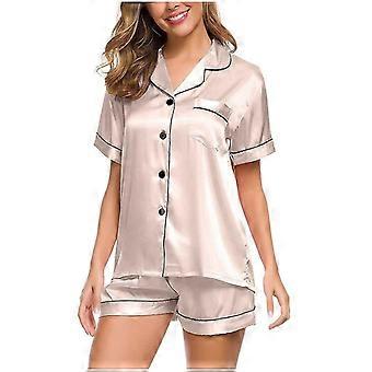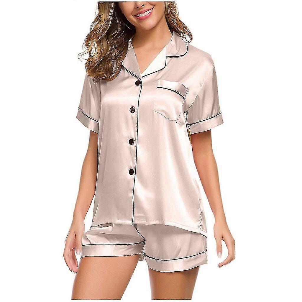 Womens Silk Satin Pajamas Set Two-piece Sleepwear Loungewear Button-down Sets