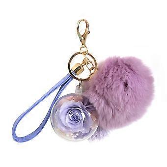 Lavender Women Key Chain with Preserved Rose Tassel and Rabbit Pom Pom