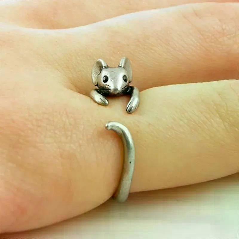 Women's Mouse Rat Shape Open Ring Antique Silver Color Contemporary Fashion Finger Accessory for Girls Hip Hop Party Jewelry Gift
