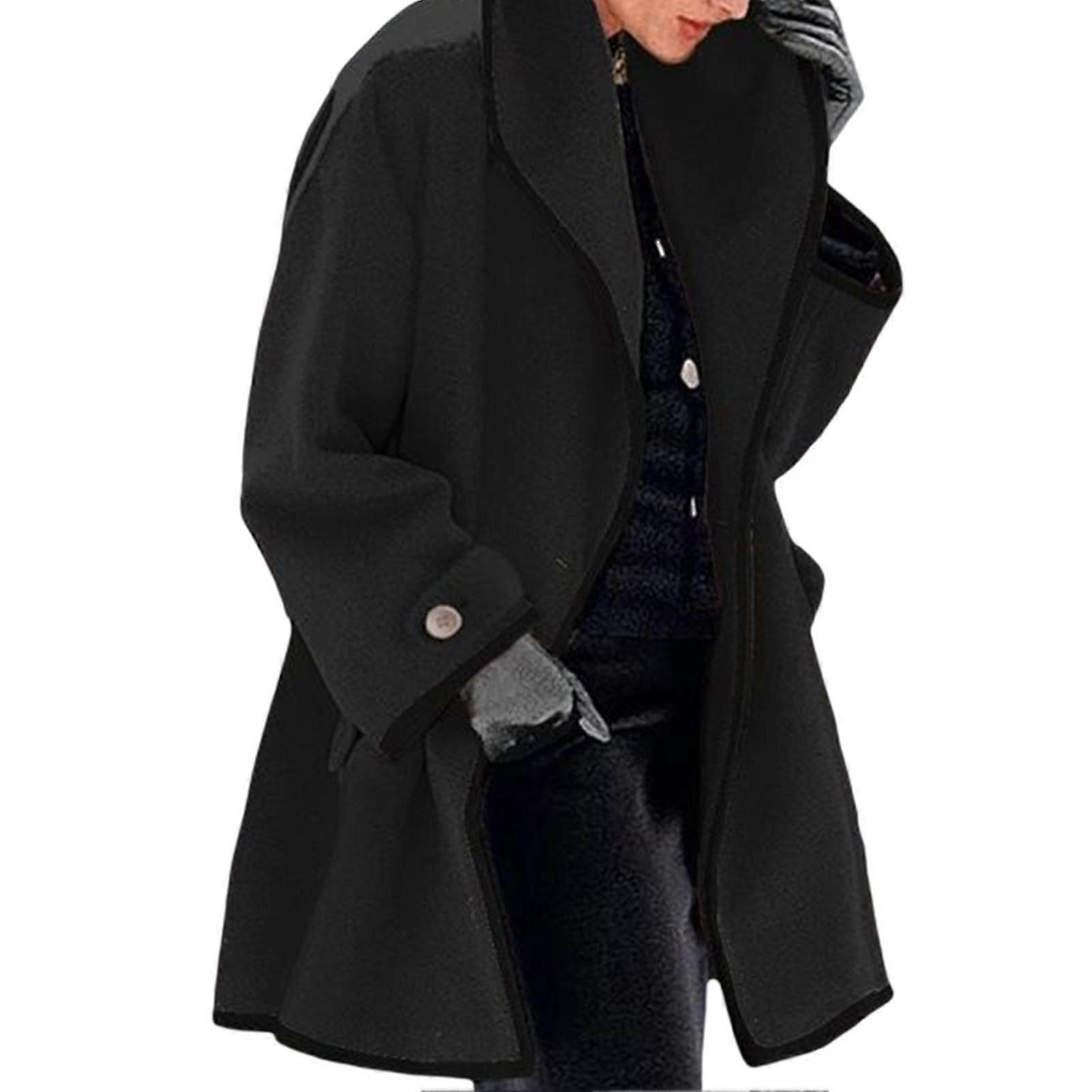 Women's Autumn Winter Woolen Coat Hooded Color Block Woolen Coat Long Sleeve Cardigan Trench Jacket