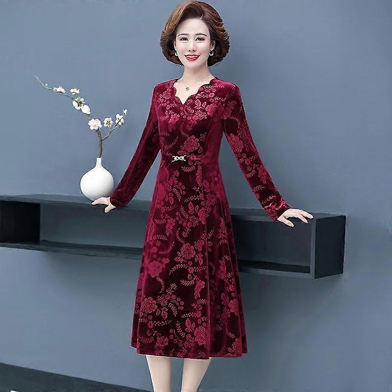 Women Spring Autumn Midi Dress O-neck Long Sleeve Pockets Design Printing Loose Fit Elegant Dress Streetwear