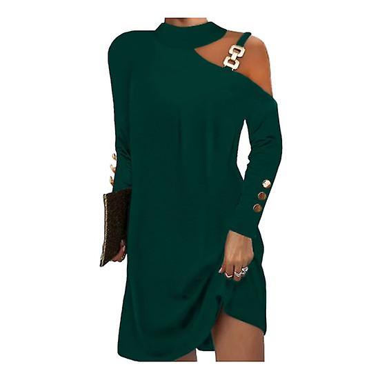 Lady Dress One Shoulder Long Sleeve Solid Plus Size Color Loose Halter Neck Sexy Soft Breathable Above Knee Length