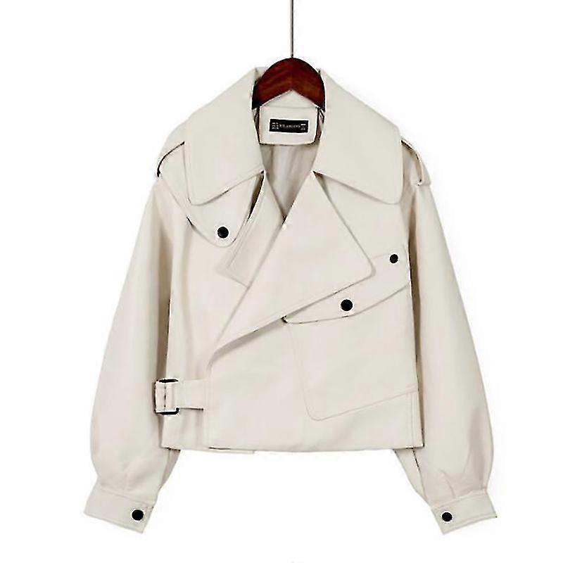 Women's Faux Leather Jacket Red Moto Biker Loose Fit Short Coat Jackets Black Beige