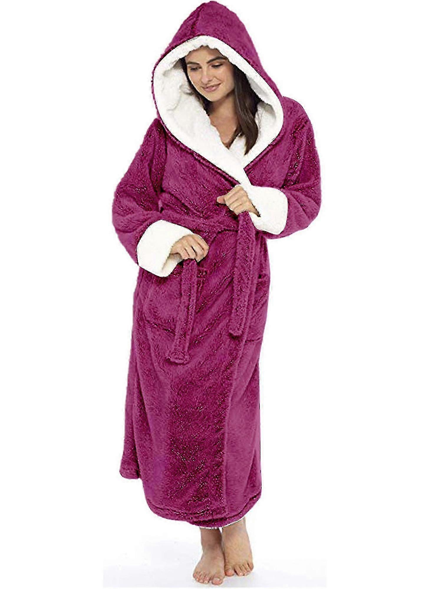 Women's Sherpa Fleece Hooded Bathrobe - Soft Fluffy Toweling Robe