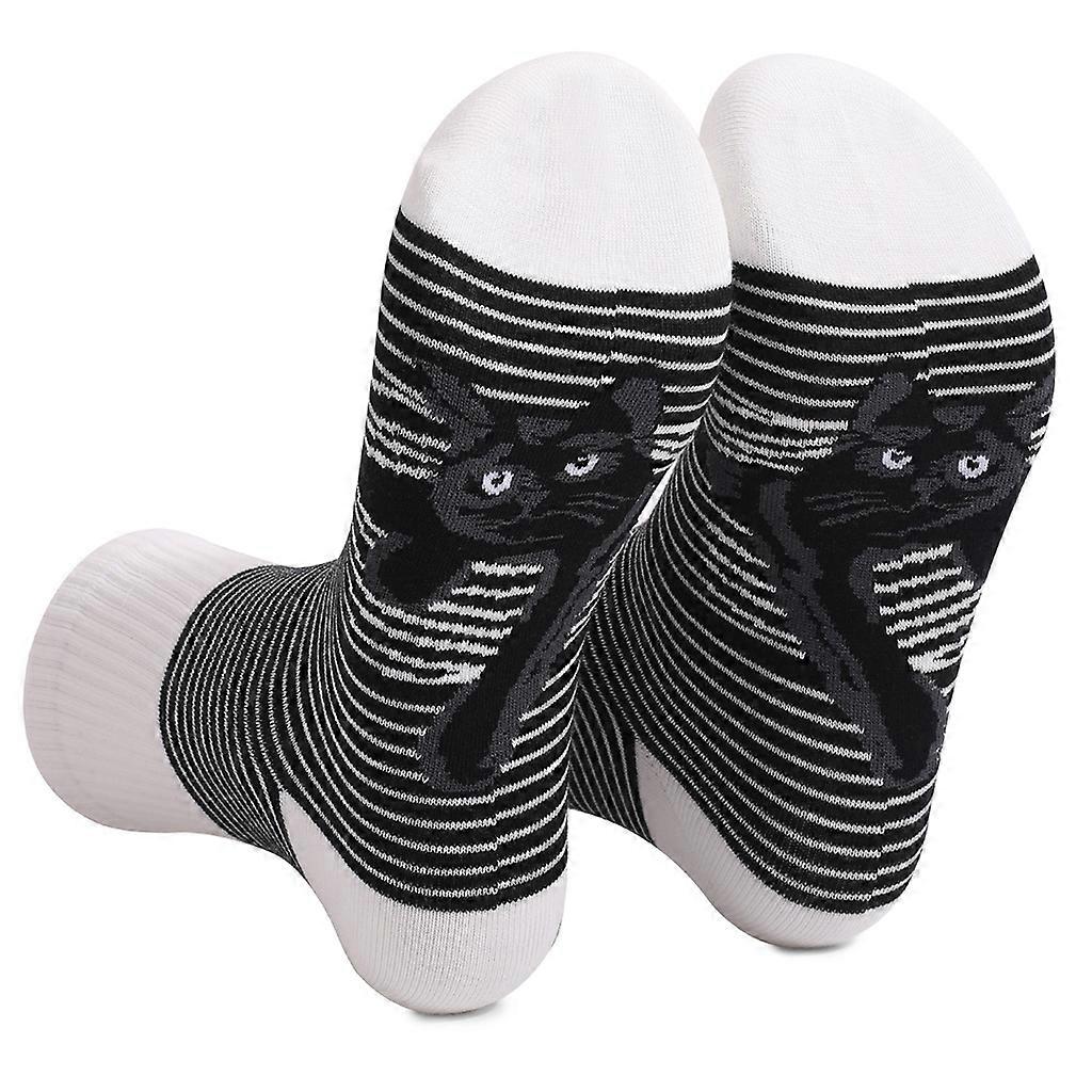 Women Men Novelty Black White Striped Crew Socks Funny Cute Cartoon for Cat Printed Bottom Casual Mid Tube Hosiery Gifts for Animal Lover