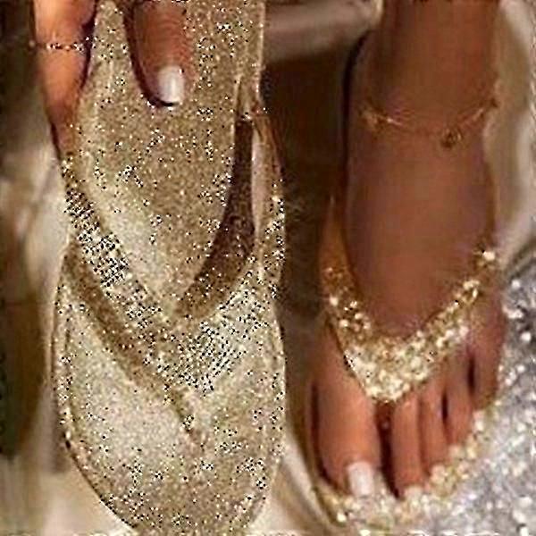 Women Summer Slippers Fashion Flat-bottom Rhinestone Sandals Flip Flops Solid Color Casual Beach Flip Flops Slide Flash Bling Bling Slippers For Women